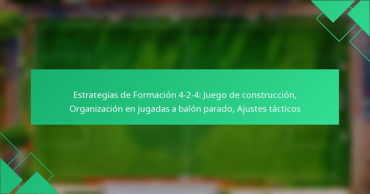 La formación 4-2-4 es una disposición táctica dinámica en el fútbol que combina una fuerte presencia ofensiva con una sólida base defensiva. Al enfatizar un juego de construcción efectivo, los equipos pueden transitar sin problemas de la defensa al ataque, mientras que la organización estratégica en las jugadas a balón parado mejora su capacidad para capitalizar oportunidades de gol. Los ajustes tácticos dentro de esta formación permiten a los equipos adaptarse a los oponentes y mantener una ventaja competitiva a lo largo del partido.