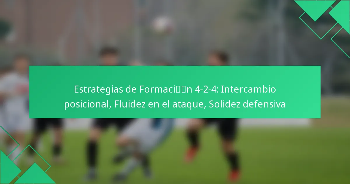 El intercambio posicional en la formación 4-2-4 implica que los jugadores cambien de posición con frecuencia para crear oportunidades de ataque dinámicas y mantener la solidez defensiva. Esta estrategia mejora la fluidez en el juego, permitiendo a los equipos adaptarse rápidamente a las situaciones cambiantes del partido.