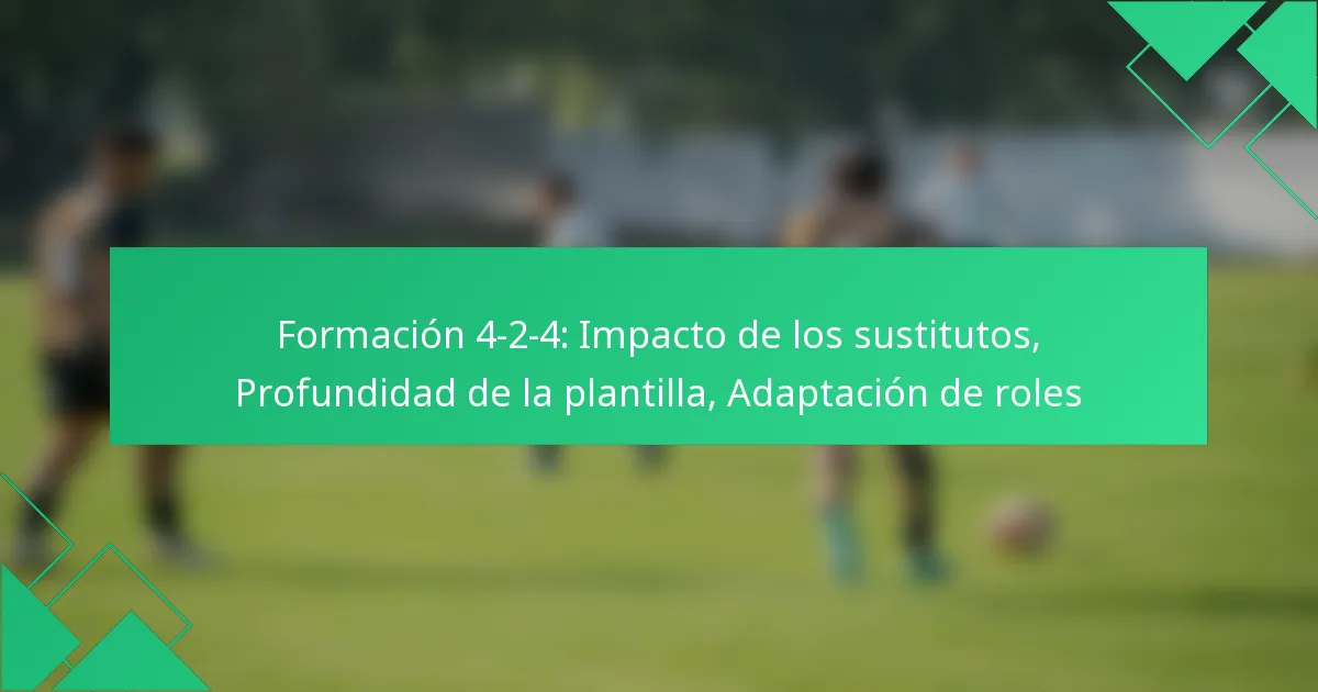 Los sustitutos juegan un papel crucial en la formación 4-2-4 al proporcionar energía fresca y flexibilidad táctica, lo que puede alterar significativamente la dinámica del juego. Sustituciones efectivas pueden mejorar el rendimiento del equipo, adaptarse a la estrategia del oponente y mantener la profundidad de la plantilla a lo largo del partido.