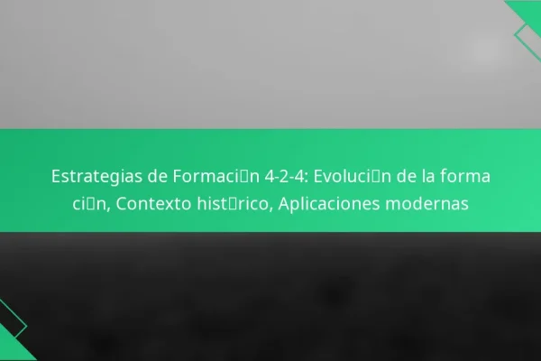 La formación 4-2-4 es un esquema táctico dinámico que enfatiza técnicas de espaciado efectivas, gestión del ancho y estrategias de sobrecarga. Al optimizar la posición de los jugadores, los equipos pueden crear líneas de pase y explotar huecos defensivos, mejorando tanto el juego ofensivo como el defensivo. Una adecuada gestión del ancho es esencial para…