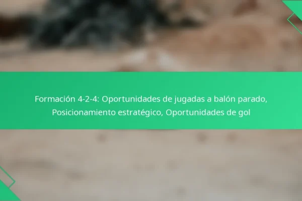 La formación 4-2-4 es un esquema táctico dinámico en el fútbol que prioriza el juego ofensivo mientras asegura una sólida estructura defensiva. Al centrarse en la posición estratégica y roles definidos durante las jugadas a balón parado, los equipos pueden maximizar sus oportunidades de gol y explotar eficazmente las debilidades de sus oponentes. Key sections…